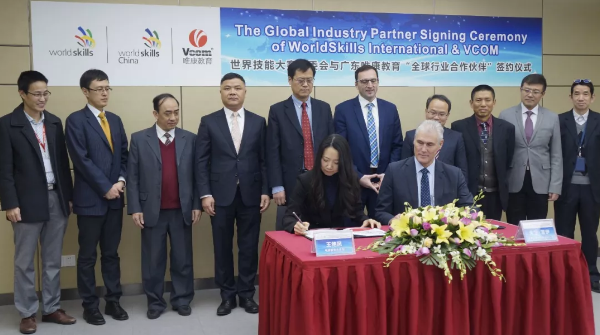 2月8日,世界技能大賽組委會(huì)與廣東唯康教育“全球行業(yè)合作伙伴”簽約儀式在廣東唯康教育科技股份有限公司隆重舉行。參與此次簽約儀式的有:世界技能大賽首席執(zhí)行官大衛(wèi)·霍伊(DAVID HOEY)先生、世界技能大賽贊助與合作總監(jiān)亞力山大· 阿米里(ALEXANDER AMIRI)先生、人力資源和社會(huì)保障部國際合作司副司長呂玉林先生、人力資源和社會(huì)保障部職業(yè)能力建設(shè)司副巡視員劉新昌先生、人力資源和社會(huì)保障部國際合作司國際組織處處長賈捷先生、人力資源和社會(huì)保障部職業(yè)能力建設(shè)司副調(diào)研員處長張雷先生、廣東省人力資源和社會(huì)保障廳交流合作處處長邱根林先生、廣東省人力資源和社會(huì)保障廳職業(yè)能力建設(shè)處副調(diào)研員處長王建平先生、唯康集團(tuán)董事長黃帥民先生、唯康教育總經(jīng)理王艷鳳女士、唯康教育技術(shù)總監(jiān)吳少鴻先生等參加并見證簽約。
